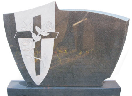 RISTI JA ROOSIGA TÄISPOLEERITUD HAUAKIVI KOMPL. KOOS ALUSEGA, MÕÕDUD 65 X 90 X 8 CM . Koos graveeringuga.